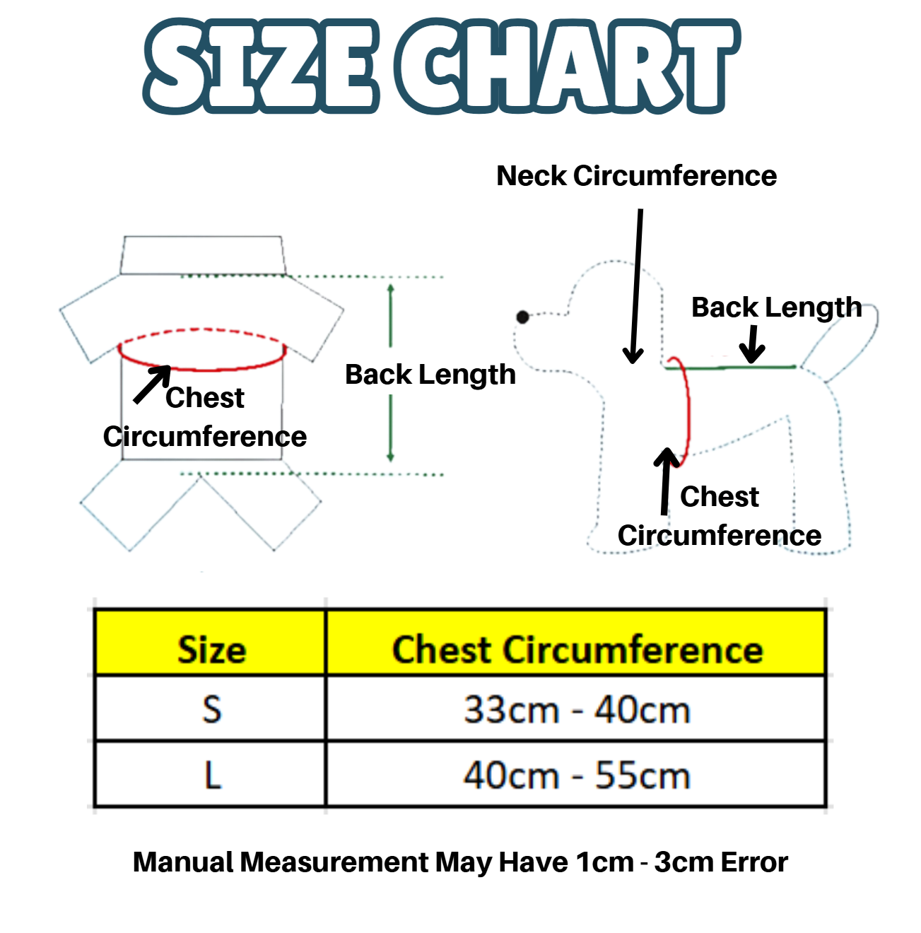 S Size (Chest Circumference : 33cm – 40cm)
