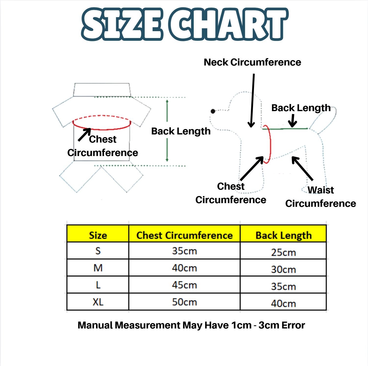 XL Size (Chest Circumference : 50cm, Back Length : 40cm)