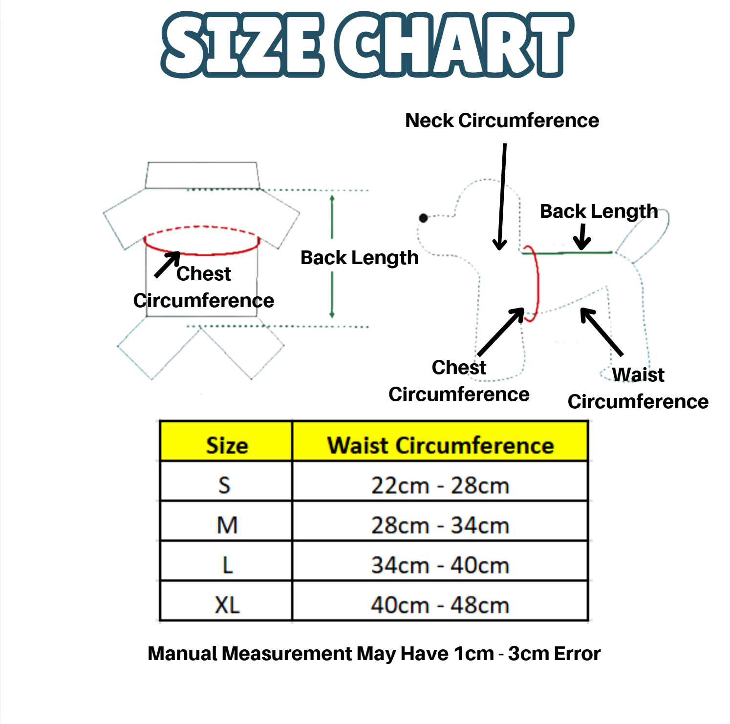 1. Manual measurement may have 1cm – 3cm errors.